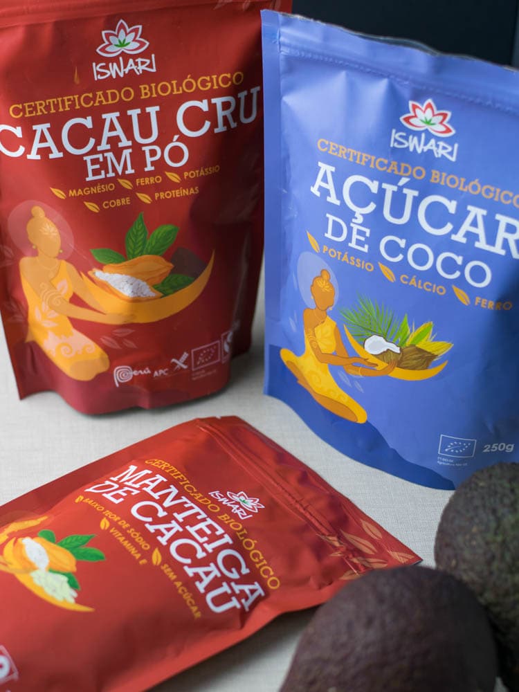 - 3 colheres de sopa de cacau cru em pó da Iswari