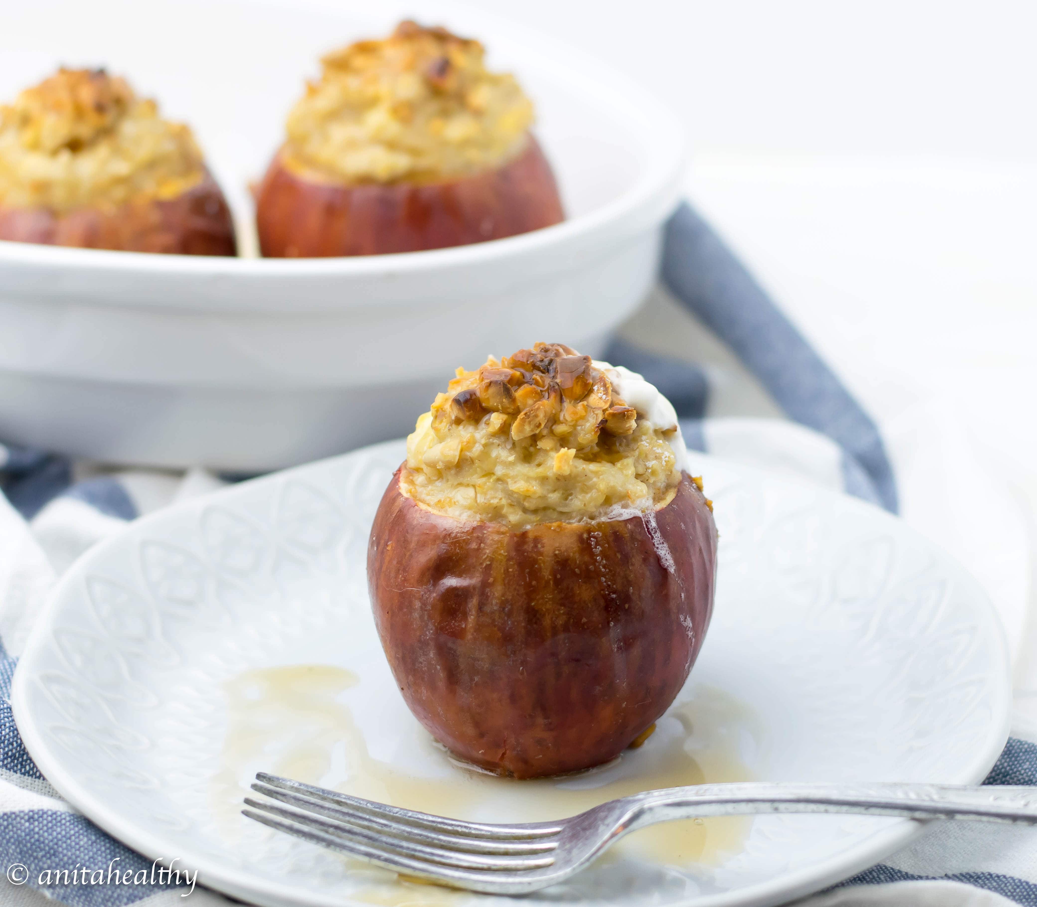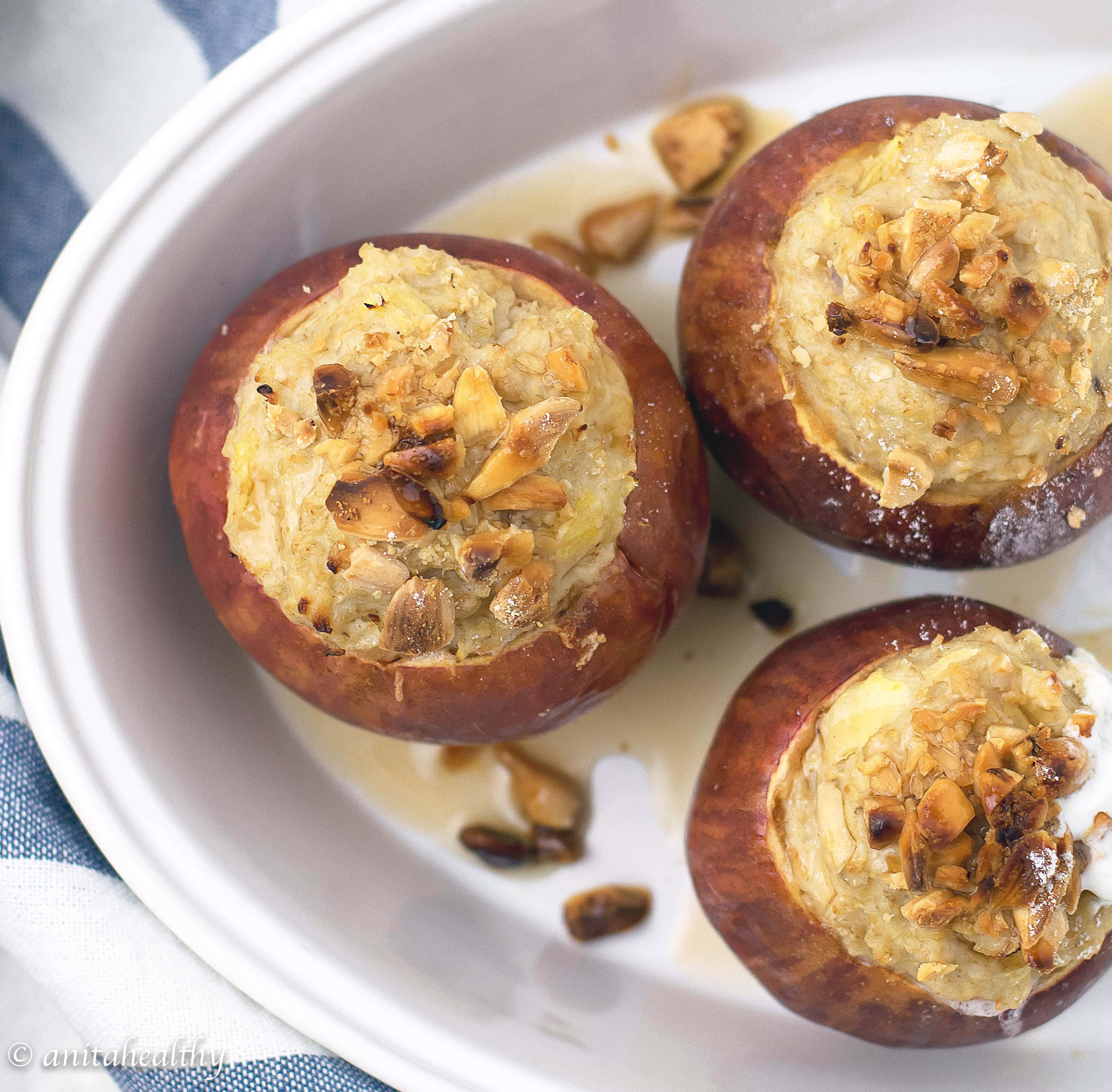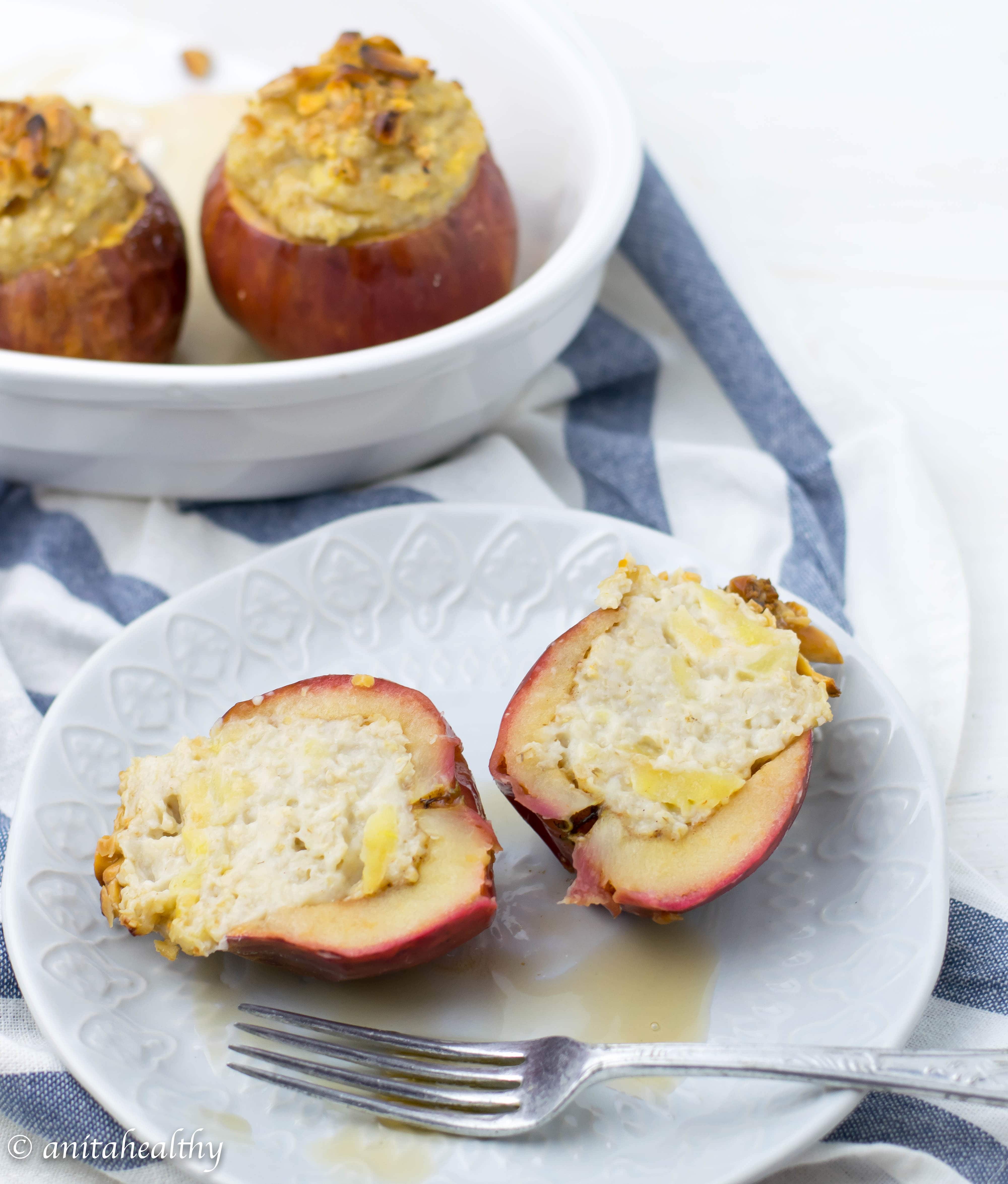 Quando se trata de invenções saudáveis na cozinha, já sabem que estou sempre pronta! Normalmente inicio a semana com papas de aveia, por ser fácil de preparar. Mas desta vez decidi comê-las de outra forma. Pois é, estas maçãs assadas recheadas com aveia ficaram uma delícia!