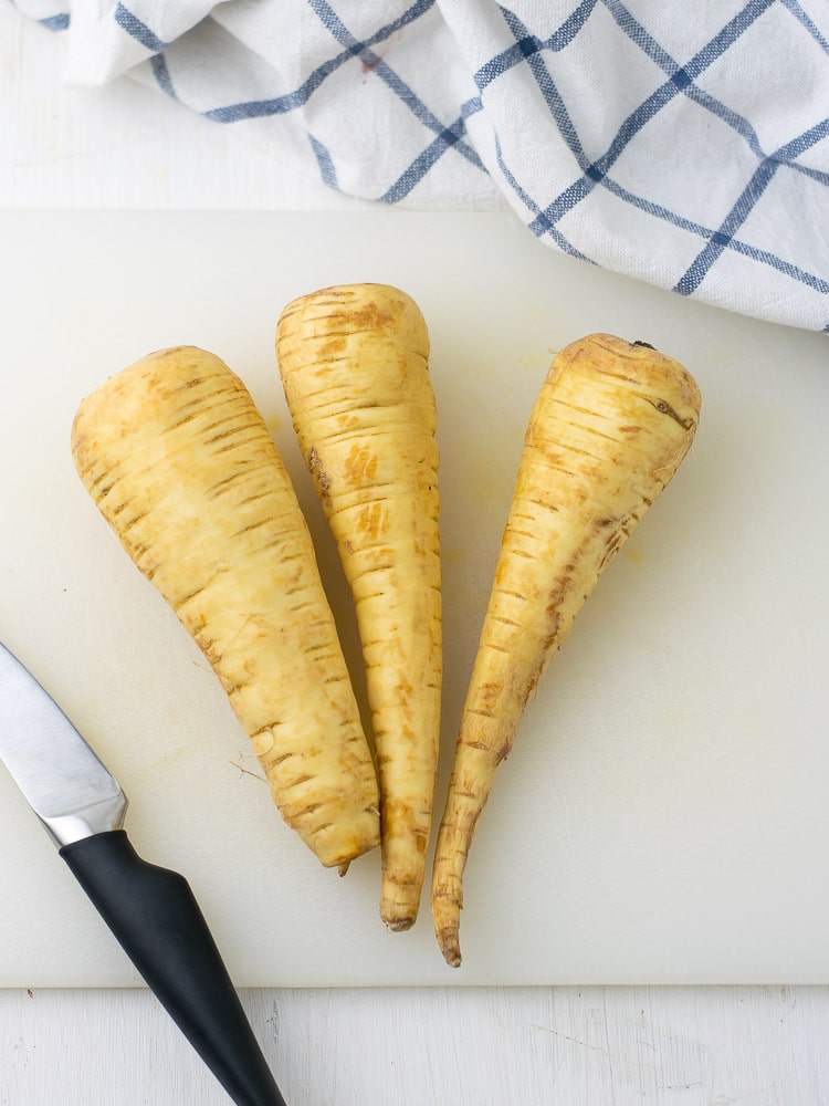 - Colocar as pastinacas no tabuleiro de forno, uma a uma, sem se tocarem, para que possam tostar bem. Levar ao forno cerca de 20 minutos, virando-as a meio do tempo.