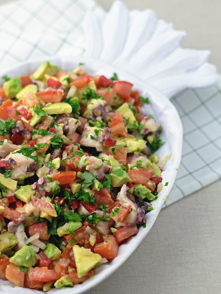 Nunca vos falei disto, mas um dos meus pratos principais favoritos inclui polvo ou lulas. Adoro a textura dos moluscos, sejam grelhados, no forno, à lagareiro…não resisto! E, por isso, um dia destes decidi aventurar-me numa salada de polvo e abacate.