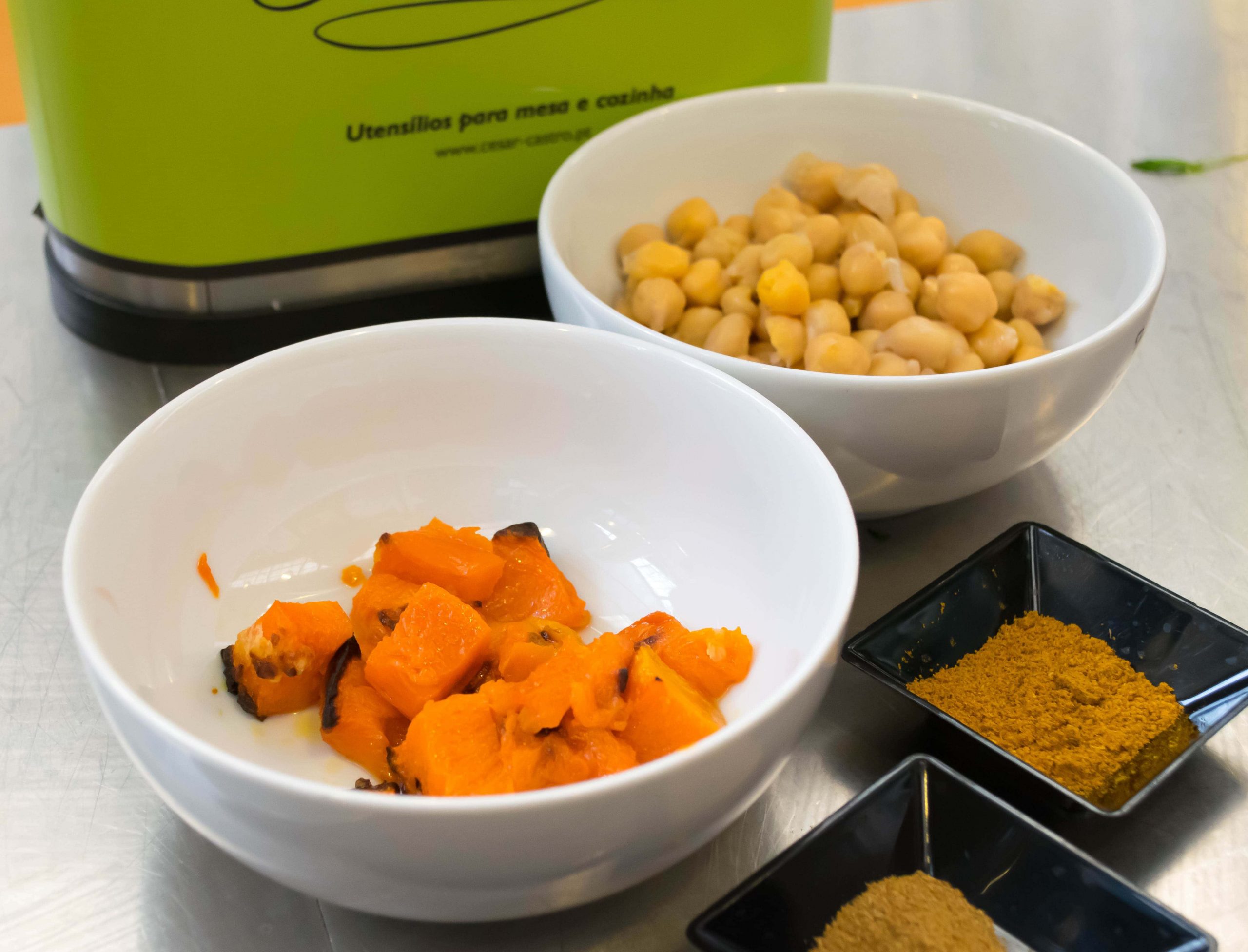 O prato principal foi uma das minhas maiores alegrias porque adoro caril. É verdade, foi um caril de grão com abóbora de comer e chorar por mais! Desta vez, deixo-vos o passo-a-passo da receita, porque vale mesmo a pena anotar: