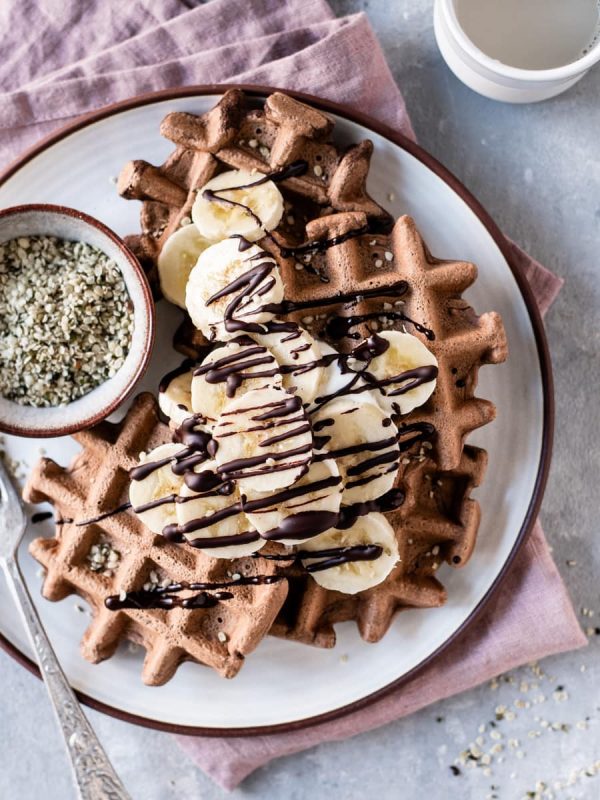 Estas Waffles foram feitas com farinha de aveia, cacau em pó e uma proteína vegan. Desta vez usei a proteína biológica de sabor a chocolate da Prozis. A vantagem é que podem comprar on-line, tem muita qualidade e tem um excelente preço/qualidade. Já experimentei vários sabores e, até hoje, gostei de todos 🙂 Mas vou dar-vos uma dica: a Prozis vende esta proteína em saquetas individuais, por isso podem escolher vários sabores para experimentarem os que mais gostam 🙂 É assim que faço e vou usando diversos sabores nas minhas panquecas e waffles.